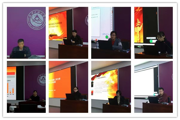 会上,14个党支部书记结合支部工作,就“三会一课”、主题党日活动、党员发展、支部规范化建设、红色1+1活动以及支部结合专业创设特色项目等内容以PPT形式图文并茂地对2018年度工作进行汇报交流。