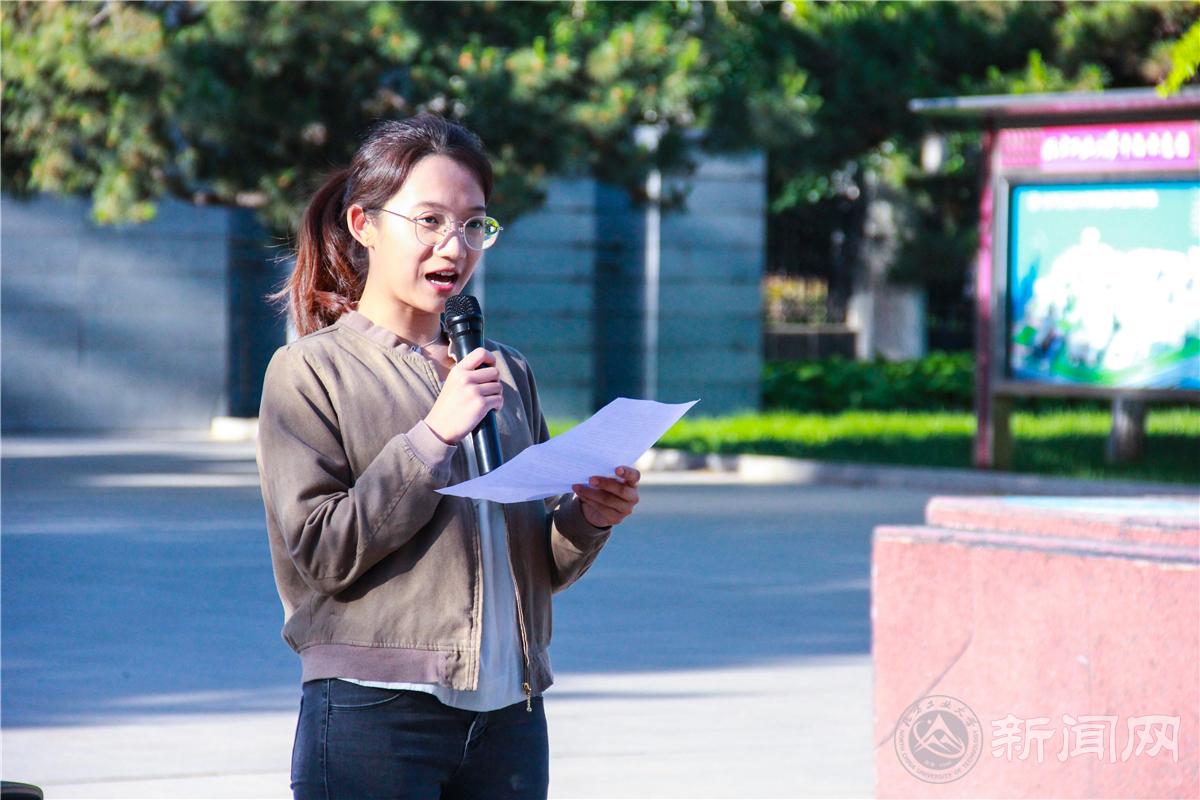 升旗完毕,到场的老师与同学们共同合唱《歌唱祖国》,响亮的歌声萦绕毓秀园的清晨。