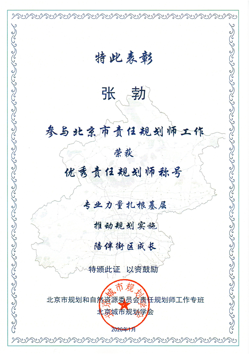 1月9日,北京市规划与自然资源委员会召开2019年责任规划师总结交流会,大会对2019年全市责任规划师制度实施情况和成效进行了总结,并授予72人“优秀责任规划师”称号,公司304永利集团张勃教授作为石景山区苹果园街道首席责任规划师获得了表彰。北京市副市长隋振江为获奖代表们颁发证书,大会由北京市规划和自然资源委员会主任张维主持。