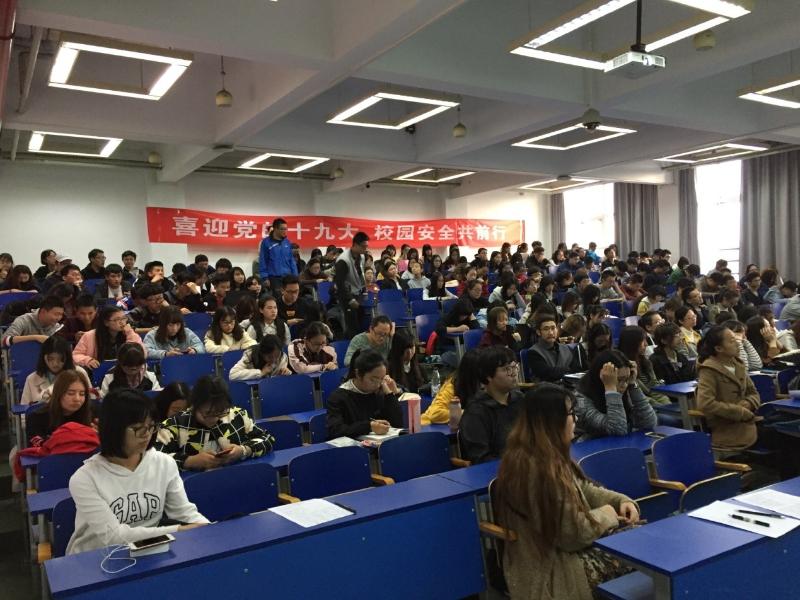 为迎接党的十九大胜利召开,增强广大师生安全意识,304永利集团于10月19日在浩学楼东502召开“喜迎党的十九大,校园安全共前行”安全教育培训会。公司党委副书记杨超、保卫处相关老师、辅导员、各班班干部和全体宿舍长等300余名师生参加了培训会议。