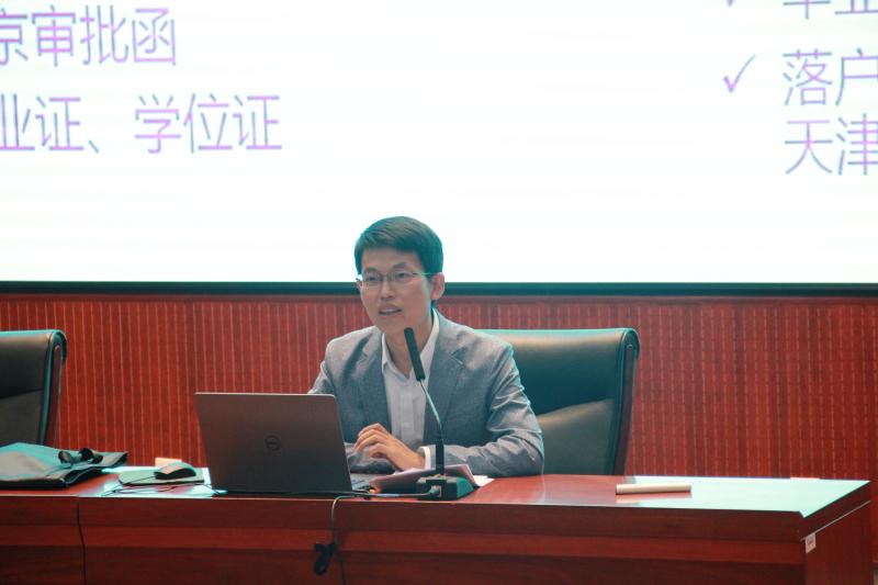 会议首先由人才招聘处处长孙宗瑞老师宣讲,他从中长期就业形势和高校毕业生情况两个方面分析了今年的求职市场现状,他要求同学们对自己的人生做好规划与思考,明确自己的方向与目标,同时做到关注规则,承担责任、锻炼技能,做好准备、积极主动,务实进取,并提高警惕、确保安全,抓紧下半年的就业黄金时期,调整好心态,以最佳的状态迎接秋招。