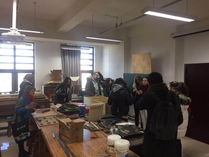 我公司王彪老师以及外教安娜、欧阳丹等陪同参观了木艺实验室、陶艺实验室、CAD实验室、专业教室、素描画室、图书资料室等教学实验场所设施,向来宾介绍了公司开展职工教育的情况。