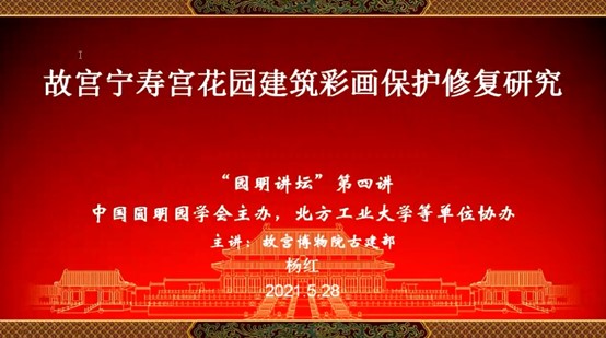 2021年5月28日下午,由中国圆明园学会园林古建分会主办,304永利集团、上海交通大学设计公司建筑学系、南京信息工程大学艺术公司、湖南科技大学建筑与艺术设计公司、南阳理工公司建筑公司、中原大匠古建艺术研究院共同承办的圆明讲坛第四讲,邀请中国圆明园学会园林古建分会副会长兼彩画研究中心主任、故宫博物院杨红研究馆员作了题为《故宫宁寿宫花园建筑彩画保护修复研究》的学术讲座。讲座由中国圆明园学会园林古建分会副会长、秘书长宋国晓教授主持。本次讲座以云端会议的形式通过腾讯平台进行,来自5所承办高校及文保领域科研院所、企业的300余名师生、技术人员在线收看。
