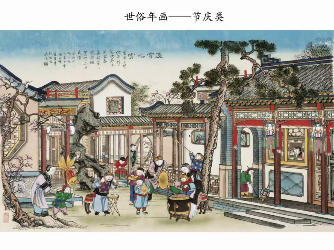 邰高娣老师从传统年画的定义及源流、传统年画的题材内容、传统年画的风格特色三个方面讲述,通过大量的年画图片对各个地区的传统年画题材、制作技巧、文化内涵以及审美特征等方面进行介绍,进而对呈现年画效果的造型、色彩、构图三个形式因素进行综合分析,其主观意象性使年画在艺术形式和风格方面,随着地理环境、社会历史、风俗好尚、审美趣味的不同而呈现出鲜明的地方特色。最后强调不同地域的年画,风格的差异性与题材内容的趋同性,是整个民族长期以来形成的共同文化心理、情感心意的反映。