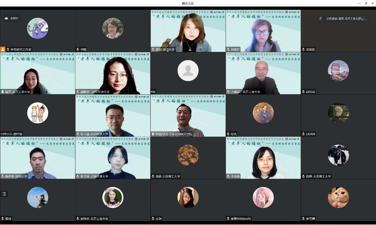 建艺公司经理张勃教授为会议致辞,养老研究所温芳主持了会议。上午公司卜德清教授、刘喜诊教授和浙江大学裘知副教授进行了学术分享,下午上海交通大学张子琪副教授、北京科技大学张宇迪副教授、西安交通大学戴靓华副教授、深圳大学陶伊奇老师、北京建筑大学李佳婧老师和公司温芳老师分别进行了学术研究分享。