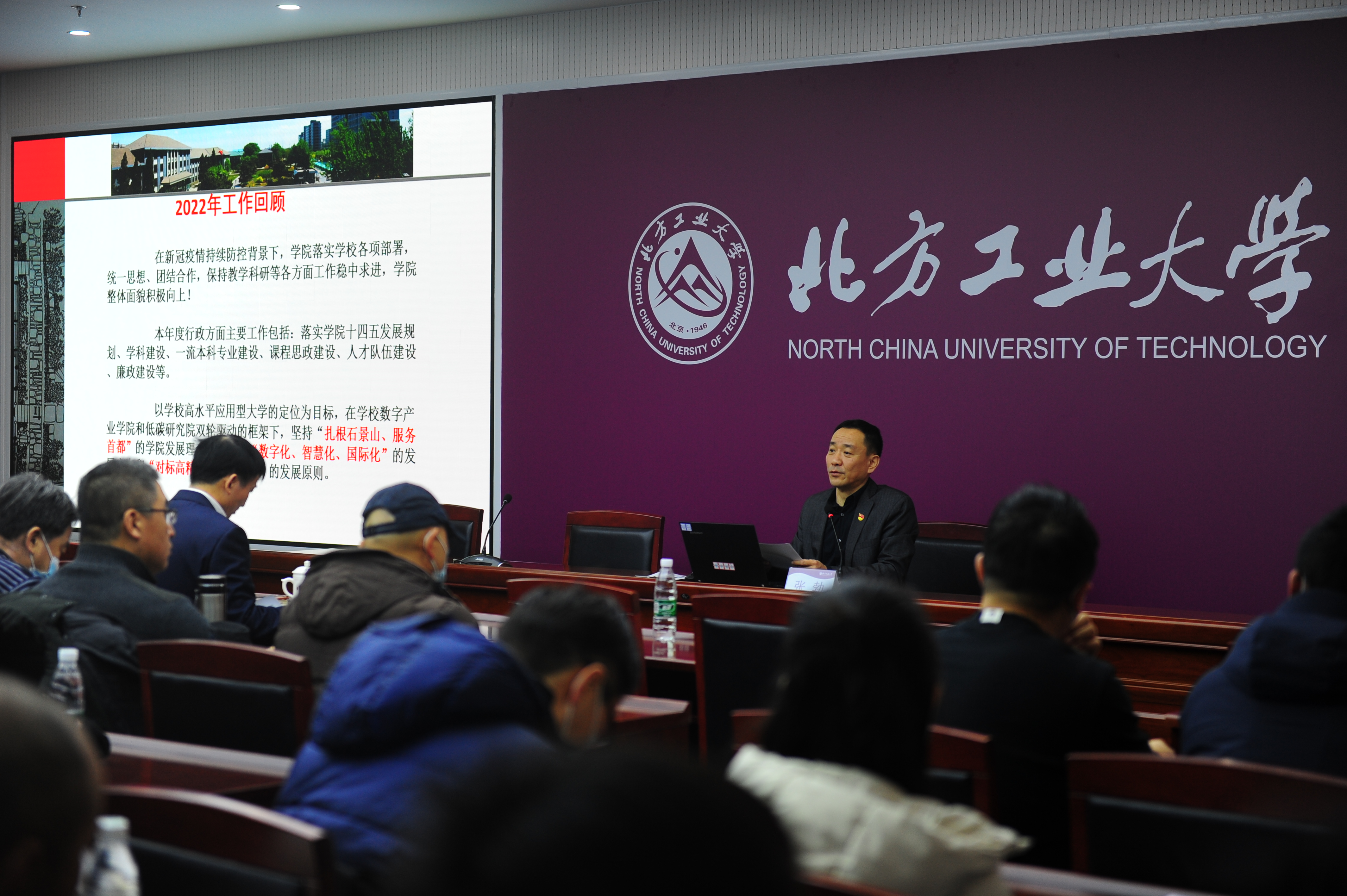 公司经理张勃在工作报告中,全面总结了2022年公司在教学科研和扎根石景山服务首都经济社会发展等方面所取得的主要成绩,围绕公司在“十四五”规划时期,建设以智能化、信息化、绿色化和国际化为特色的高水平应用型大学的目标和2023年公司重点工作任务,结合公司实际,重点从迎接教育部本科公司产品审核评估、高层次人才引进和团队队伍建设、招生、培养和就业一条龙人才培养模式、专业发展规划和团队建设、国际交流等几个方面,对公司相关工作进行了部署。