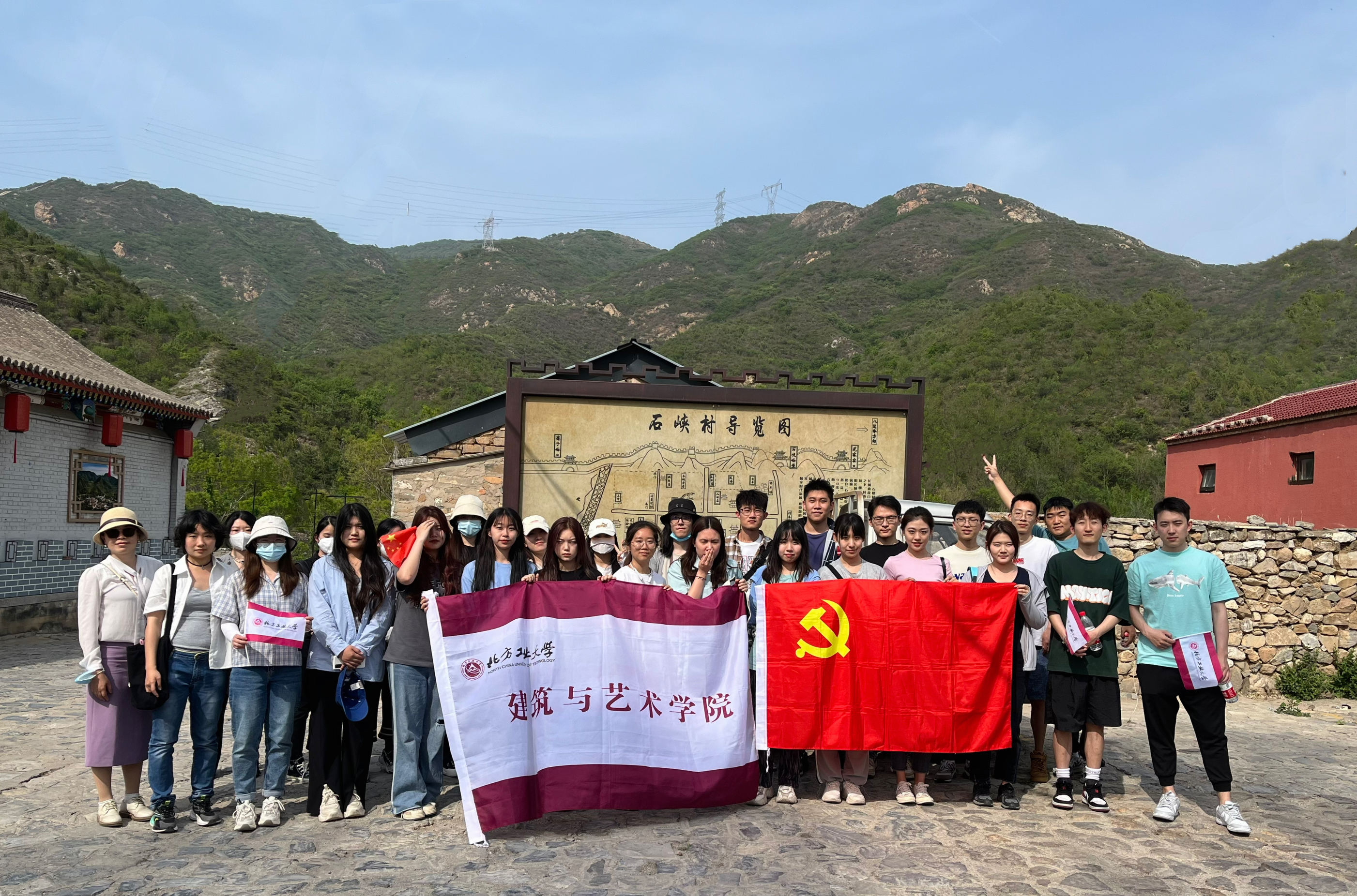 304永利集团环艺本科员工党支部与八达岭镇党委开展红色“1+1”共建活动,利用专业优势,参与打造的具有长城文化特色的农商文旅融合项目——“石峡关谷•少年使者”研学团,于5月28日在八达岭镇石峡关谷帮水峪村正式开团。40余组亲子家庭共同参与开团仪式,并分组参与了地质勘探、考古发现、长城手作、围炉煮茶、泥巴王国、模拟装窑、长城内部构造探秘等环节的研学活动。公司师生党员不仅为该研学团开团活动提供了背景板、手卡等各种设计服务,活动过程中还全程参与活动备场和研学助理等工作。