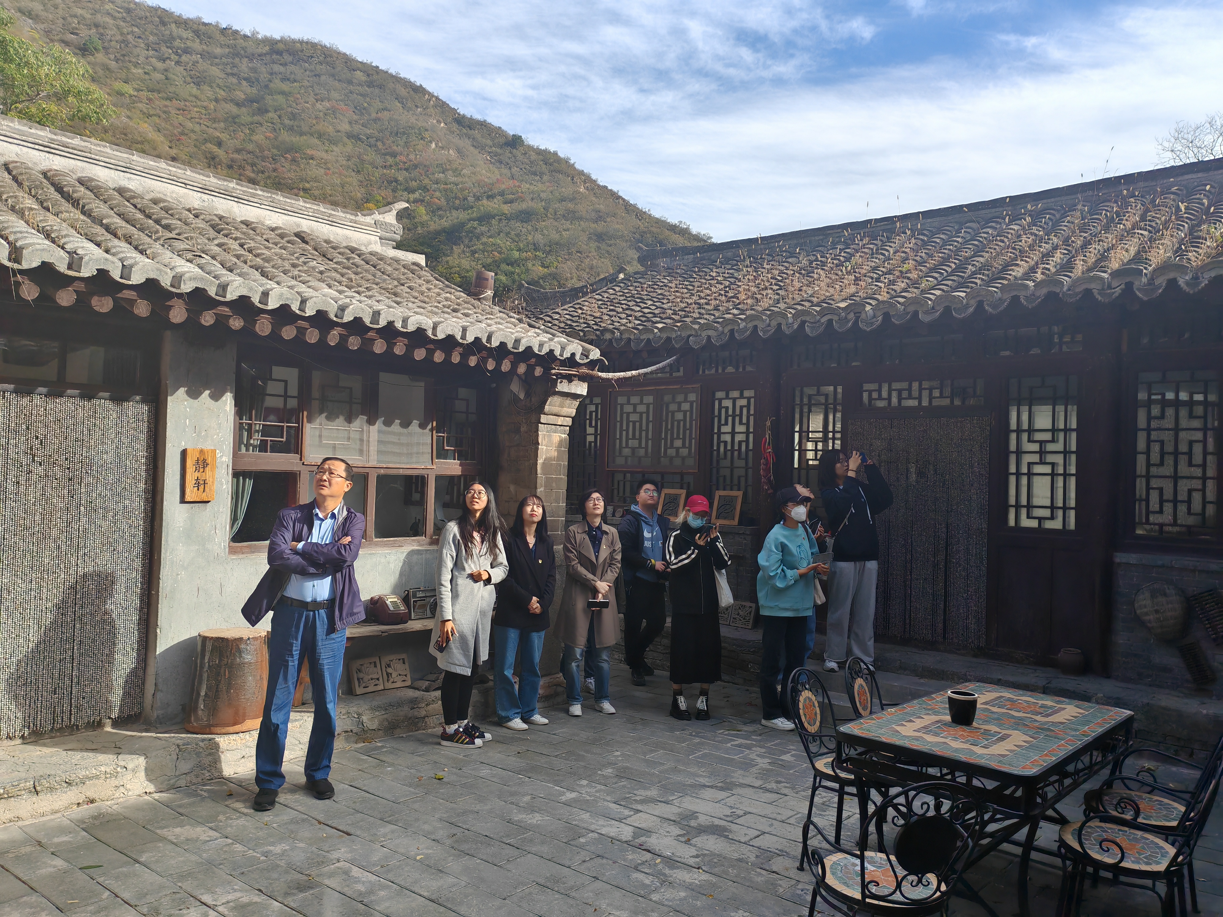 柏峪村为斋堂镇辖村。位于门头沟西北部,附近无村落,为斋堂镇最偏远的山村。在党支部书记王雷老师的带领下,同学们多次前往柏峪村开展调研助力乡村振兴,依托“产-学-研-用”围绕产业振兴、文化振兴、生态振兴助力京西地区发展。在爨柏沟域党委书记滕峰的带领下师生共同走入乡村,了解实地情况、与当地居民深入交流探讨,了解了柏峪村的历史沿革、风土人情、文化特色,并参观了村落内现有的民宿、文创、乡村剧院等产业。