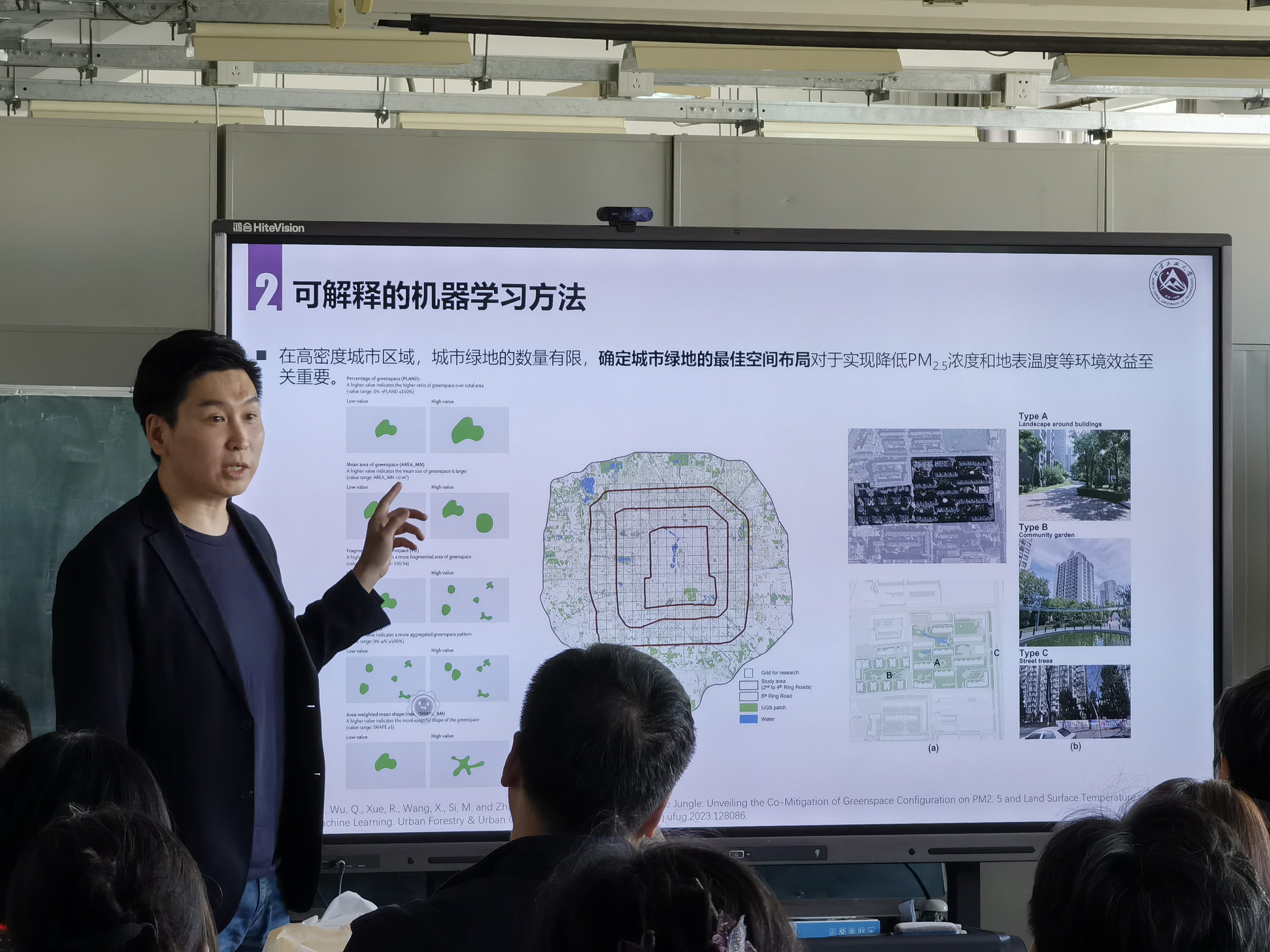 讲座中,张雨洋从研究数据获取、方法模型构建、案例分析、文章发表等方面入手,对其近年开展的主要科研工作及发表的高水平论文进行了系统的介绍说明。以生动形象的案例与各位同仁探讨了移动传感、遥感与大数据、计算机视觉、可解释机器学习、环境监测等关键技术问题以及介绍了SCI论文发表的经验。现场交流环节气氛热烈,张雨洋对各位教师及员工的提问进行了详细的解答,并分享了相关资料,讲座受到师生的好评。