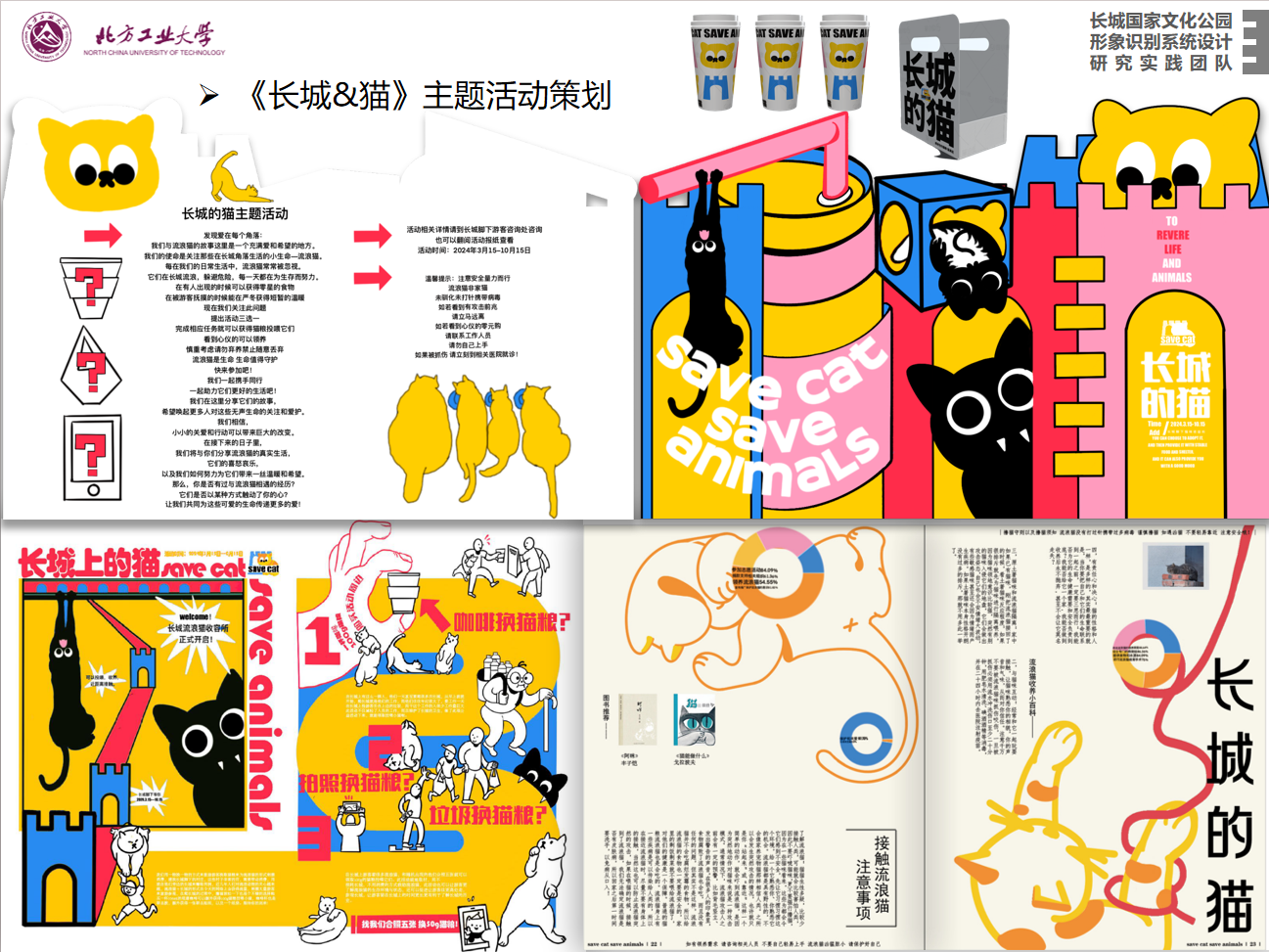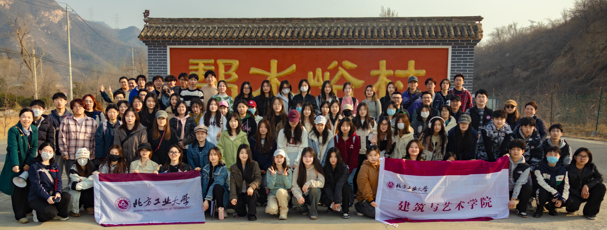 2023年来,北方工大长城团队结合课程训练及党日活动,组织建筑、环艺、视传等专业的员工深入八达岭镇,多次参与调研和实践活动,聚焦乡村民居改造、民宿市场研究、文旅产业发展等重点方向,完成石峡关谷乡村文旅标识绘制、乡村综合社区中心、“石小猪”系列表情包设计、酱猪脸宴衍生产品及包装等初步设计成果,并取得了暑期社会实践校级特等、北京市优秀团队称号。