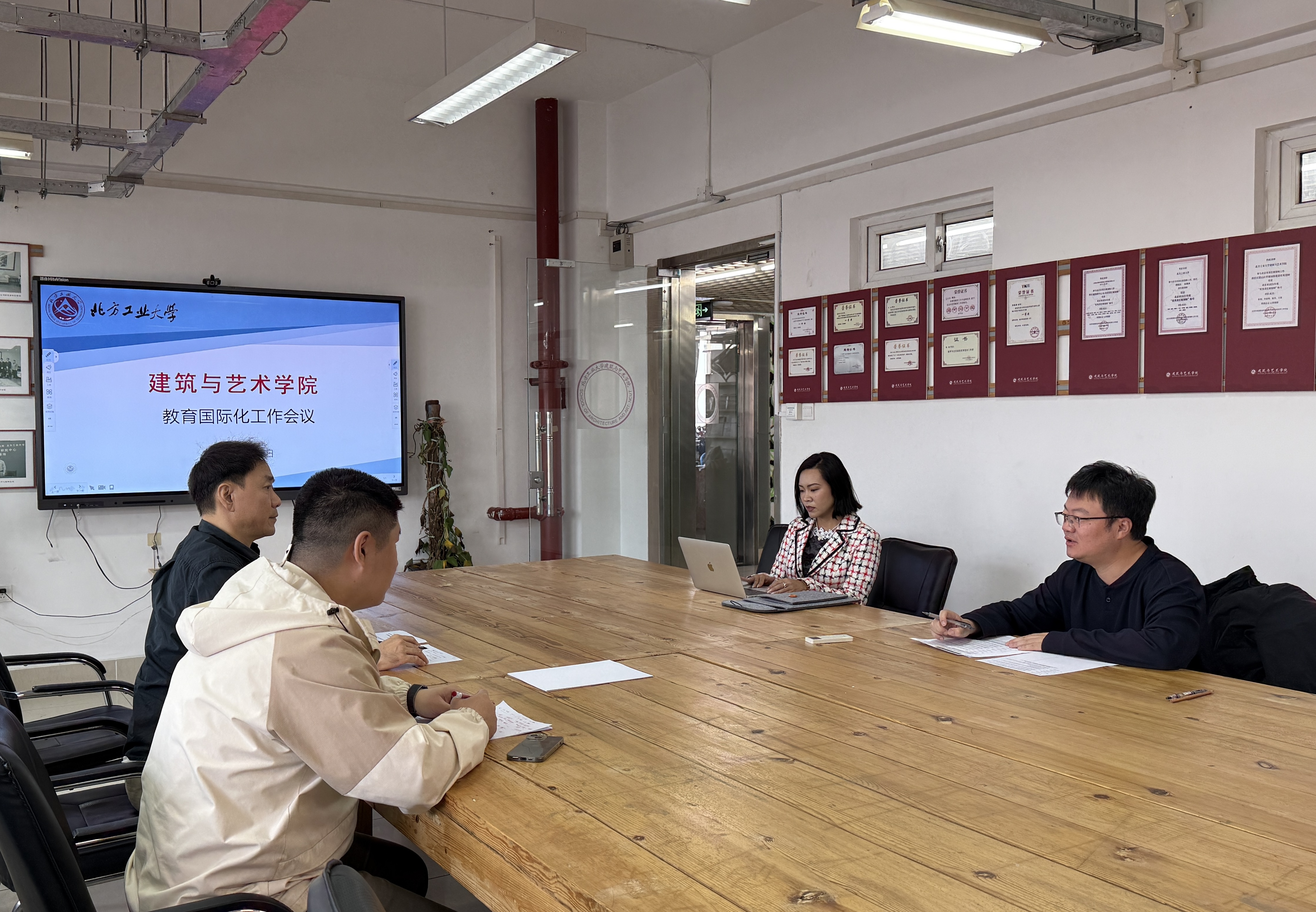 10月12日上午,建艺公司在浩学楼1207召开教育国际化工作专题会议,讨论了与德国柏林工业大学推进建筑学专业中外合作办学项目事宜。国际公司宋伟副经理参加会议,帮助解读了近期教育部、市教委关于中外合作办学项目的相关政策。
