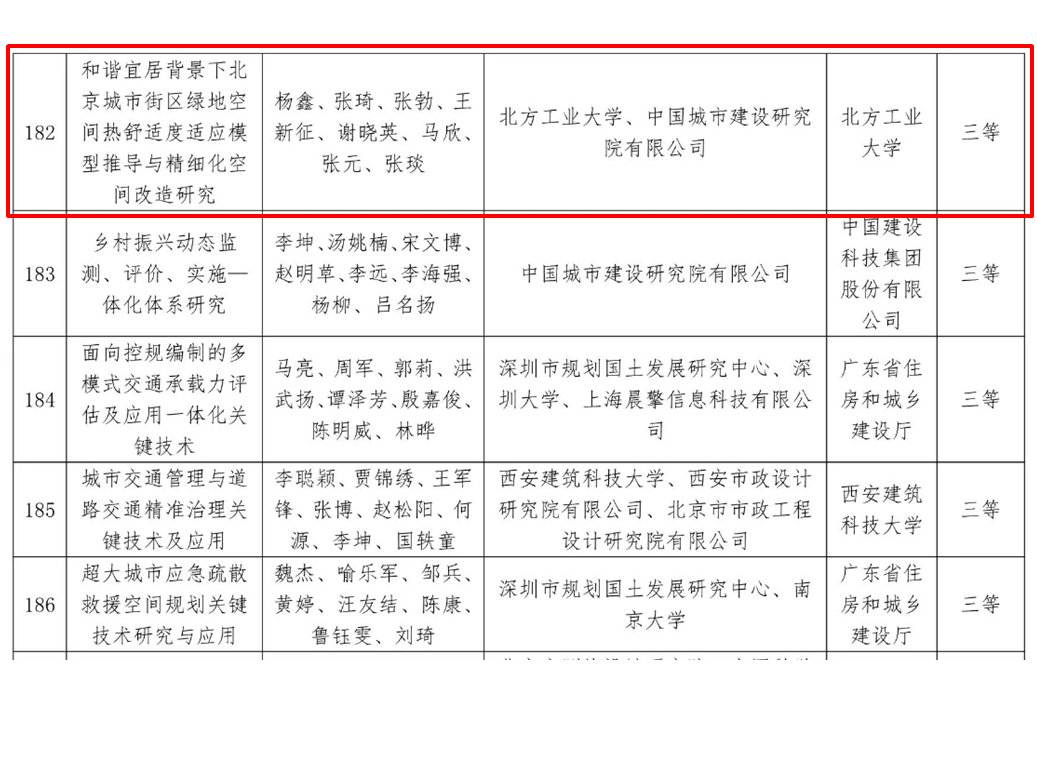 近日,住房和城乡建设部公布了2024年度华夏建设科学技术奖授奖项目名单。由公司304永利集团建筑系杨鑫教授牵头,张勃、王新征、马欣等作为主要完成人申报的《和谐宜居背景下北京城市街区绿地空间热舒适度适应模型推导与精细化空间改造研究》获得三等奖,标志着304永利集团取得了受到业界认可的重大科研成果。