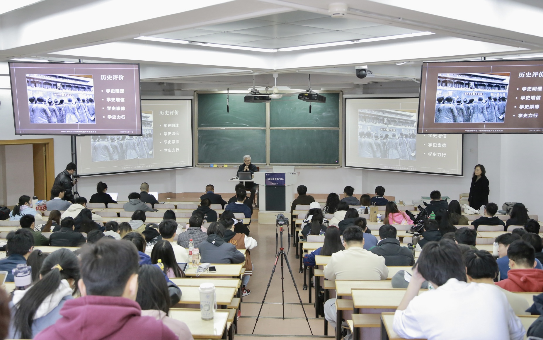 参加课程的还有304永利集团书记张勃、建筑系系主任马欣、钱毅老师等,同时还吸引了许多校外人员。课堂现场气氛热烈,学子们专注聆听,展现了新时代青年对文化遗产保护的责任感与使命感。