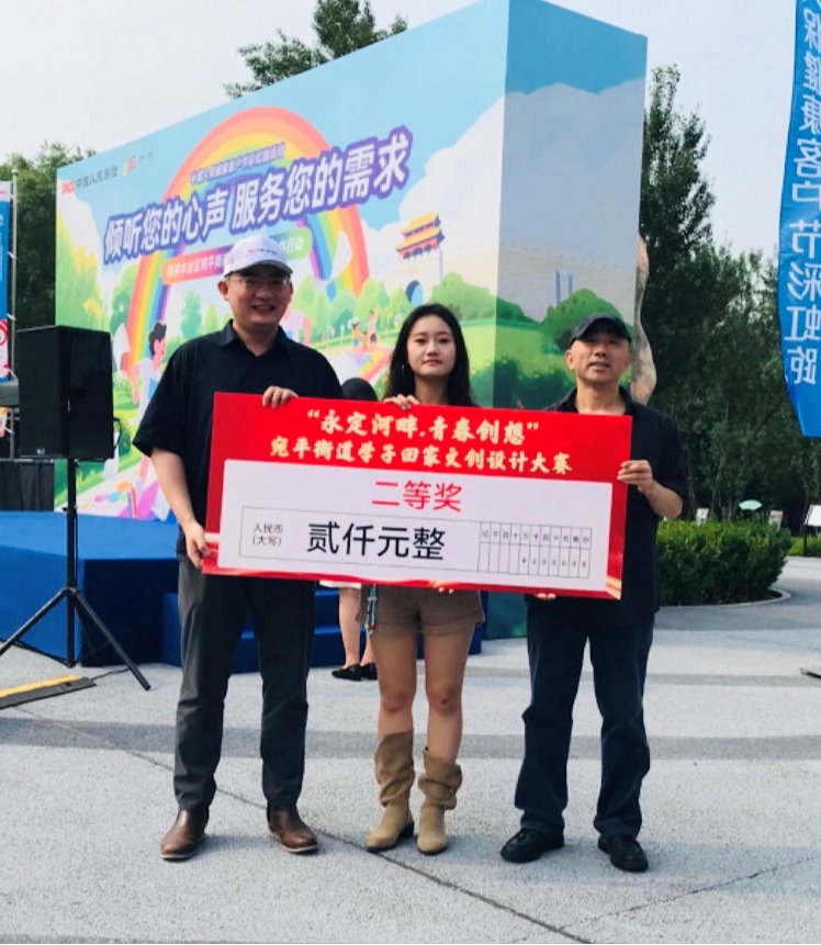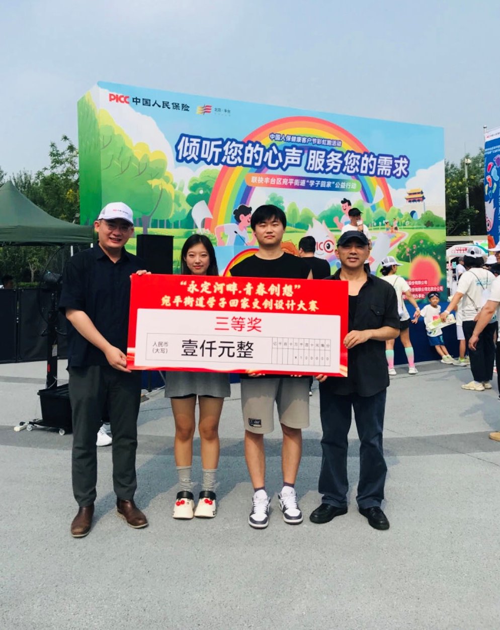 本次大赛由丰台区宛平街道办事处与老庄子河畔文化传播(北京)有限公司共同举办。大赛适逢北京市“两园一河”规划,旨在激发学子们对家乡文化的热爱与创新。庞梦蝶同学的参赛作品《数字人长源》、刘瑗玮、江雯晴同学作品《月映永定·光影茶韵》获大赛二等奖;黄新钦同学作品《宛小河》、田子桐、郭展齐、蔡雨含同学作品《水韵京华卷》、郭旭彤、王涵琪、李小乐同学作品《永定河畔:非遗青春梦绘卷》等获大赛三等奖。