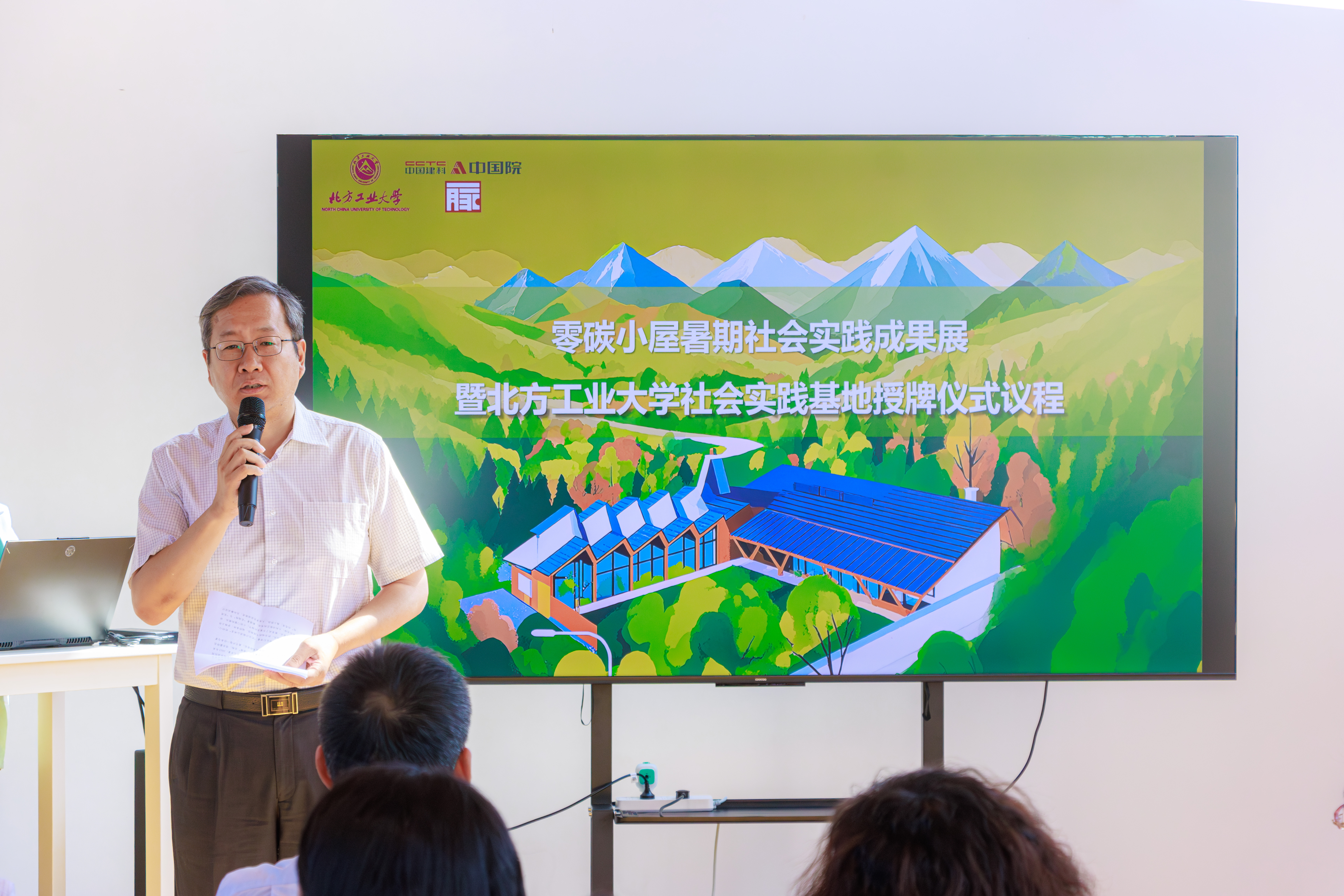 中国建筑学会理事郭海鞍宣读了《关于命名2025-2029年中国建筑学会科普教育基地的决定》,员工工作部部长孙宗瑞与延庆区张山营镇镇长高琳琳共同为公司社会实践基地揭牌。与会人员参观了“零碳小屋”社会实践成果展并前往张山营星空小镇参观极端天气下的韧性城市建设主题展。