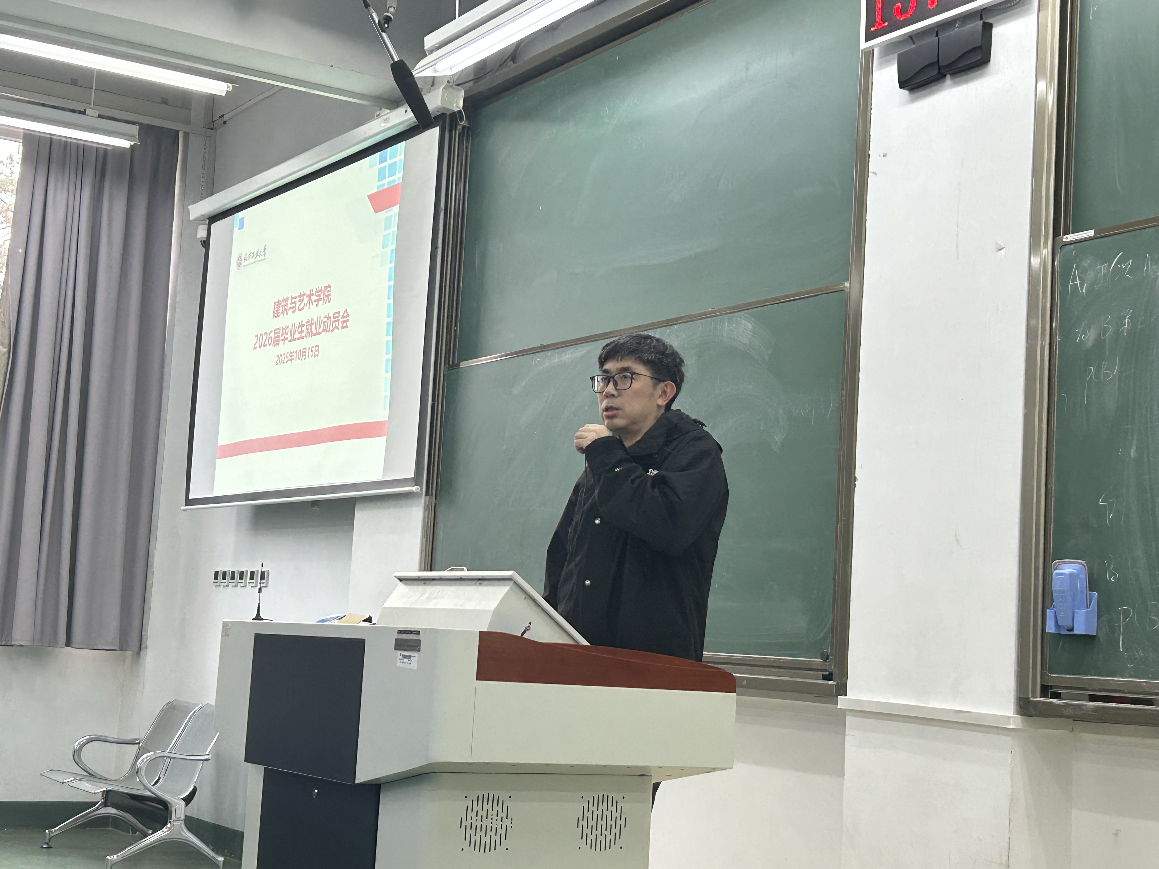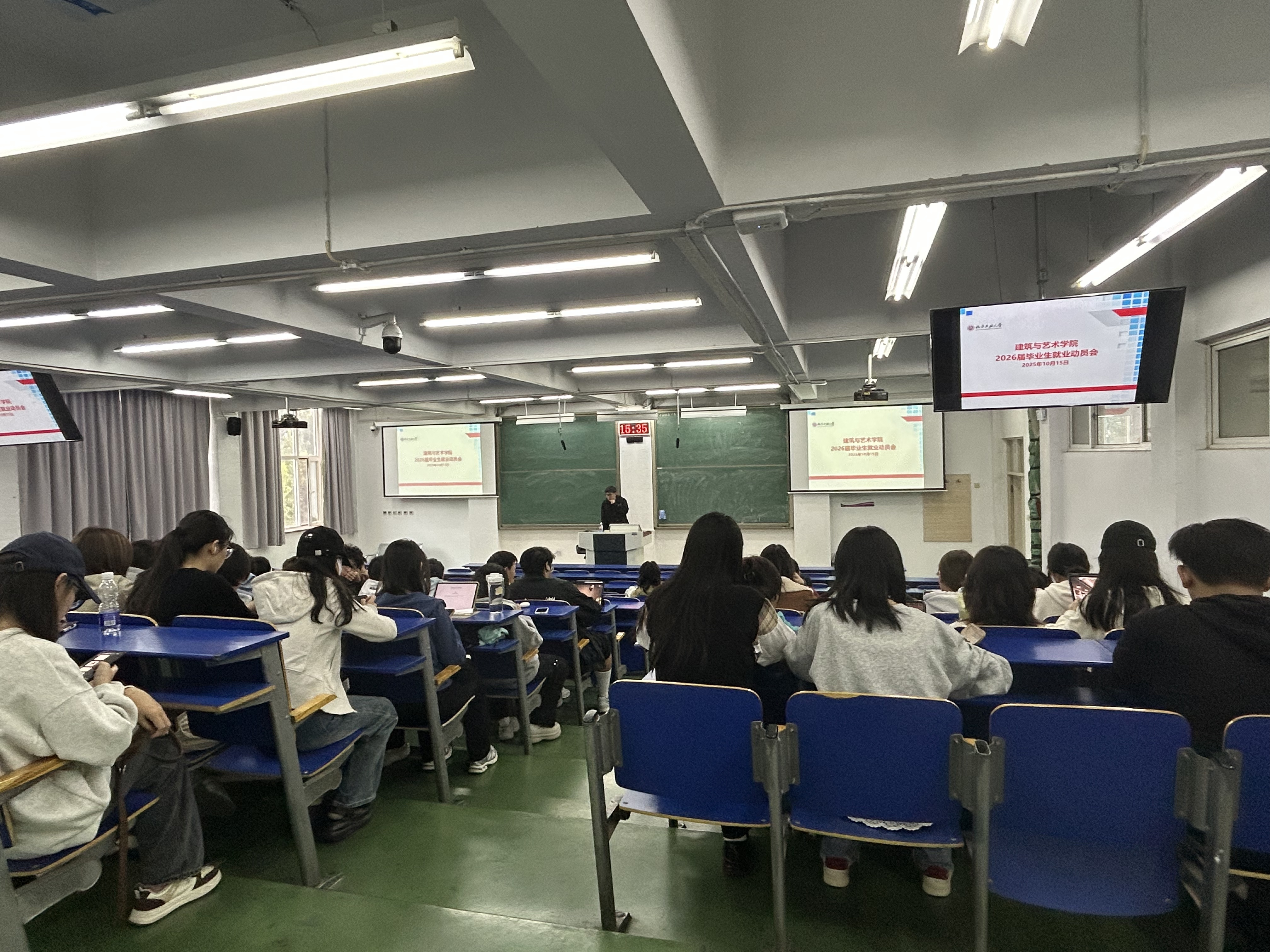 毕业班辅导员介绍了公司近几年就业、考研情况,解读了公司就业政策规定、相关办事流程以及对应注意事项。
