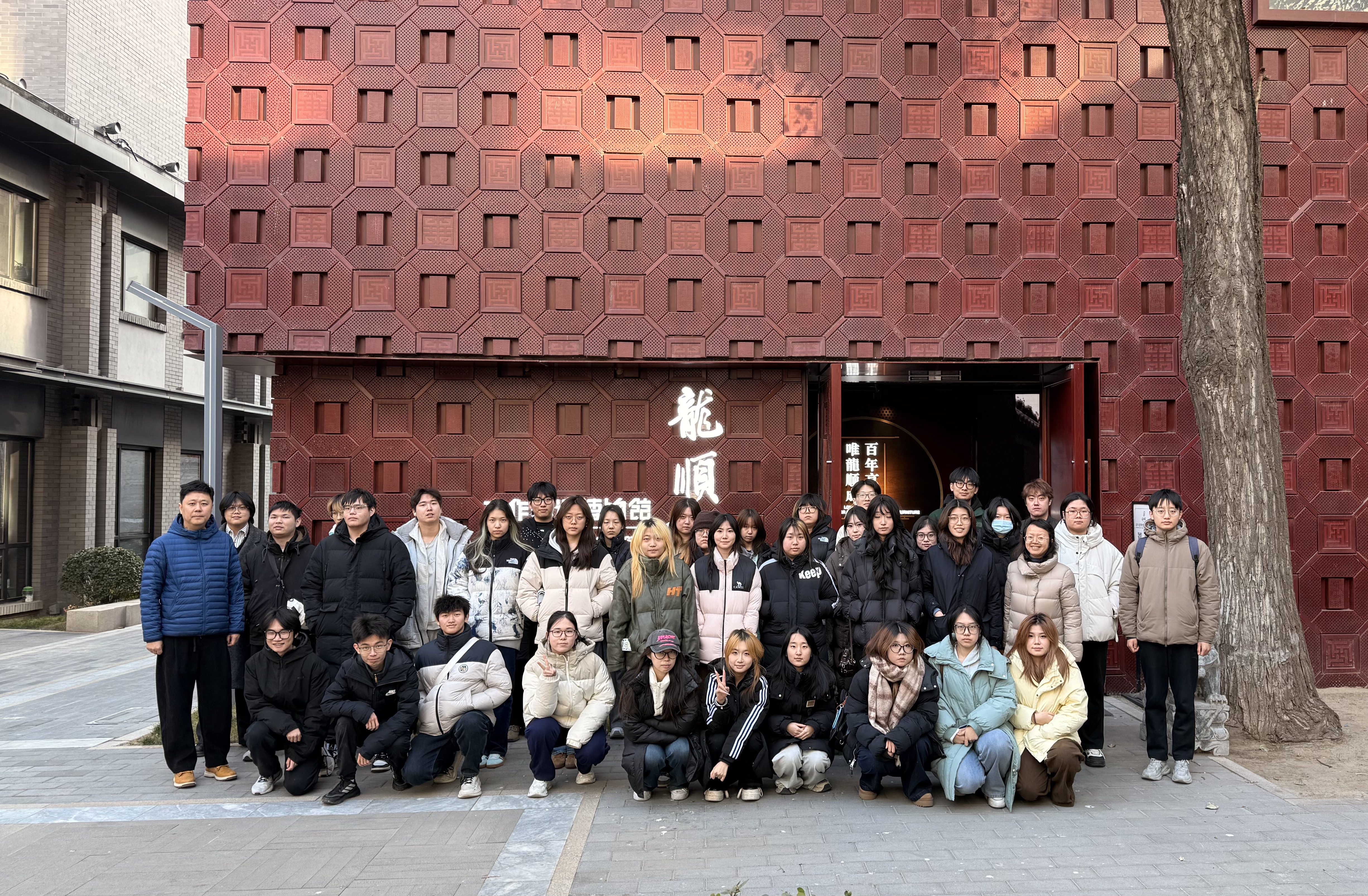 随后,师生走进龙顺城明清家具非遗博物馆,置身于中国传统木作的艺术殿堂。馆内陈列的明清红木家具珍品,以精巧绝伦的榫卯工艺、典雅匀称的造型比例与深沉的文化意蕴,彰显出中式家具独有的匠心美学。同学们近距离观摩家具的构造细节与纹饰脉络,聆听近现代家具在工艺、形态与功能上演进的故事,也为今后从事空间设计积累了丰富的传统文化素材。