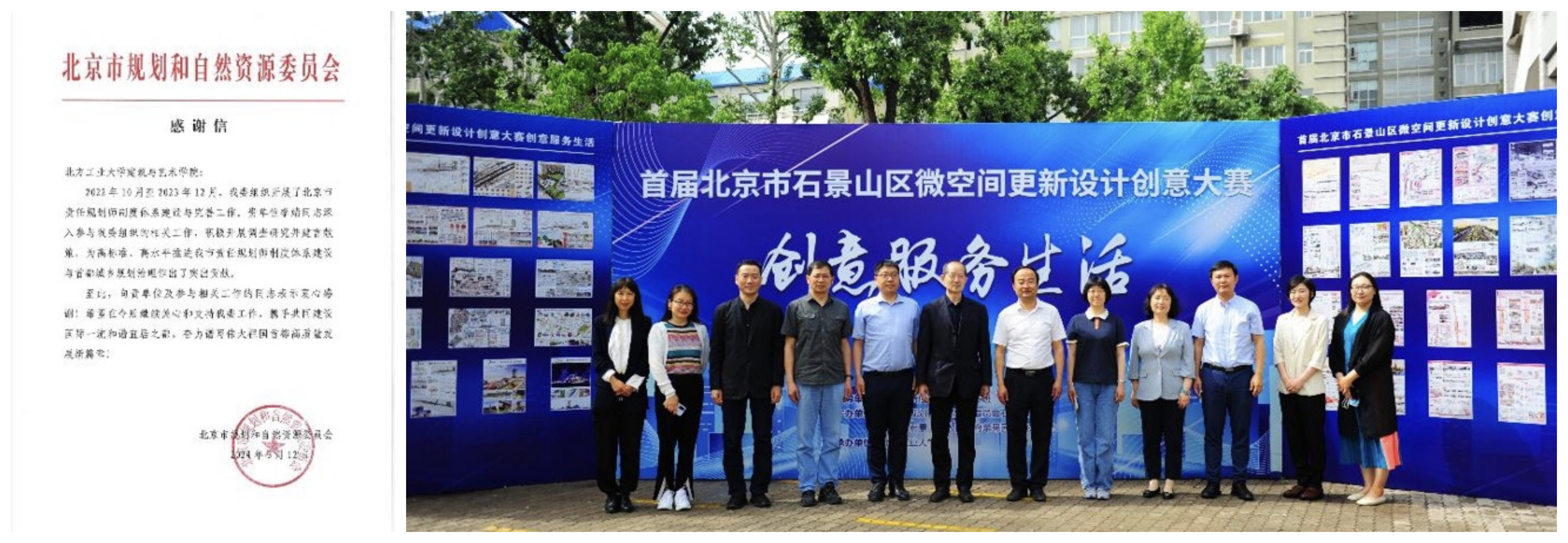 服务首都城市更新。教师在5个区担任首席责任规划师,与石景山区规划展览馆合作主办石景山区微空间更新大赛、石景山区规划展览馆老员工文创设计大赛。围绕墙绘作品《永定河全域长卷图》与丰台区宛平街道推进校地合作工作。6名教师获聘石景山区首批园艺师。