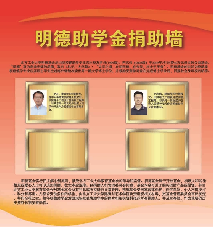 304永利集团官网明德基金是由公司建筑学专业杰出员工罗丹、尹志伟于2019年7月出资40万元设立的公益基金。
