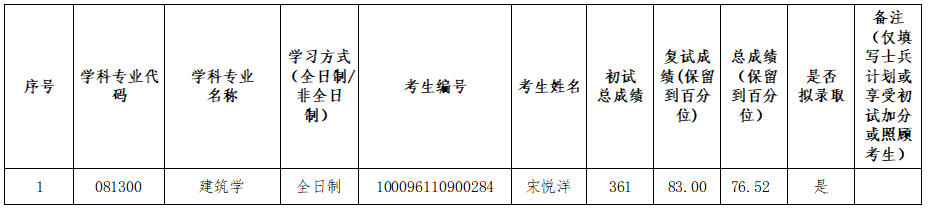 2026年建筑学(081300)第一批次复试结果公示(02建筑历史与理论方向)