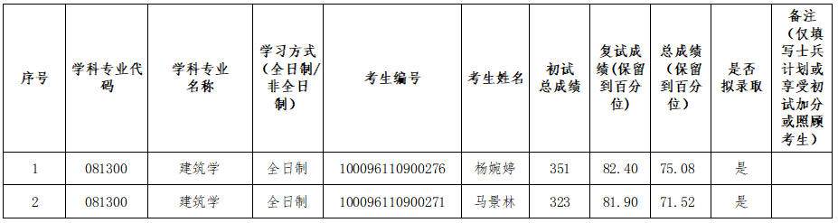 2026年建筑学(081300)第一批次复试结果公示(03建筑技术科学方向)