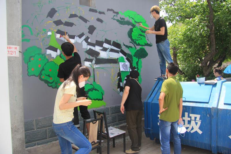 本次活动以八亩堰旅游度假村的村貌美化为主要内容,充分发挥环艺本科员工绘画设计的专业优势开展活动。同时,环艺本科员工党支部书记张鹏程针对该村景观规划提出了建设性意见。同学们的工作得到八亩堰村党支部书记和村民的一致好评。